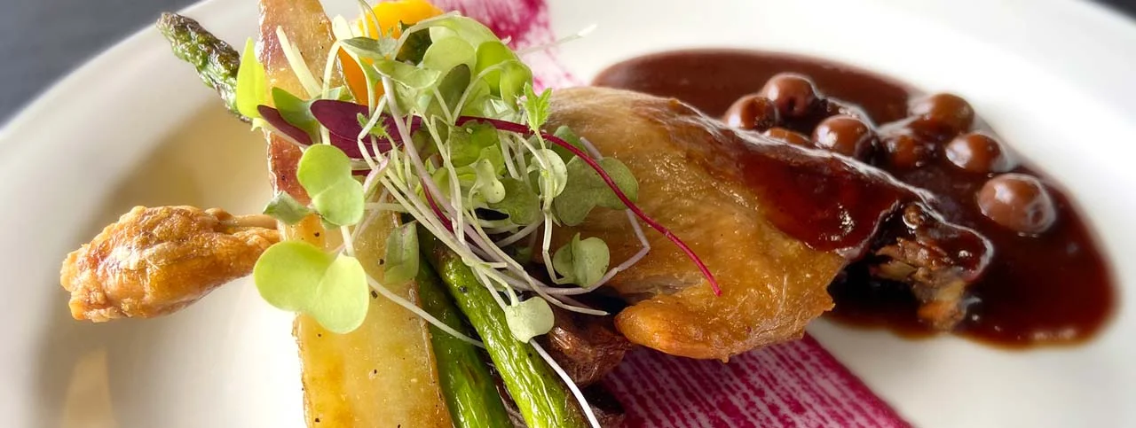Whether it’s in the table d'hôte or à la carte, you will be delighted by the variety of dishes and the audacity of the flavours. To accompany your meal, the Wine List offers a selection of specialty products and private imports to enjoy sublime pairings. To end in style, enjoy one of our sublime homemade desserts.